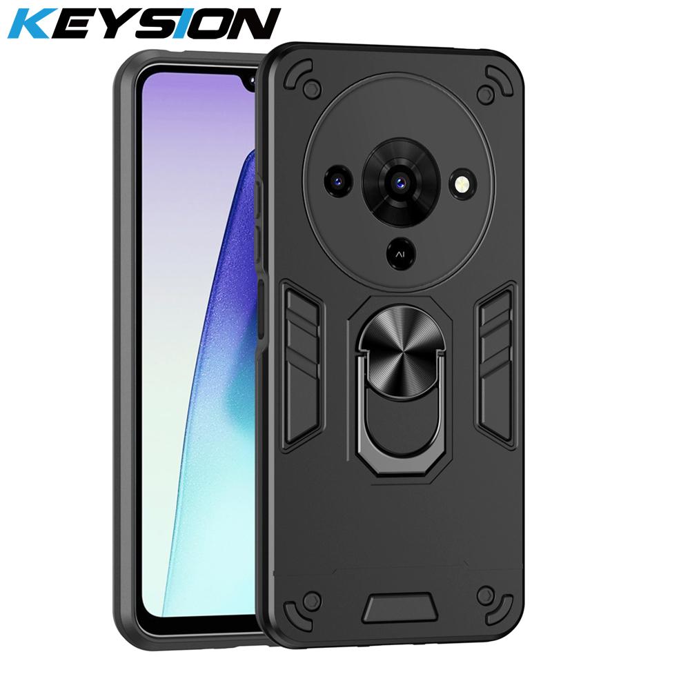 KEYSION Shockproof Armor Case for ZTE Blade A76 5G Soft Silicone+PC Metal Ring Stand Phone Back Cover for ZTE Blade A76 5G