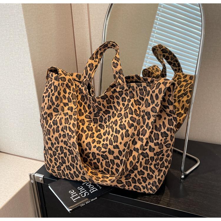 Large Capacity Tote Bag for Women 2025 New Leopard Print Tote Bag Fashionable Simple Shoulder Handbag Commuter Bag for Women