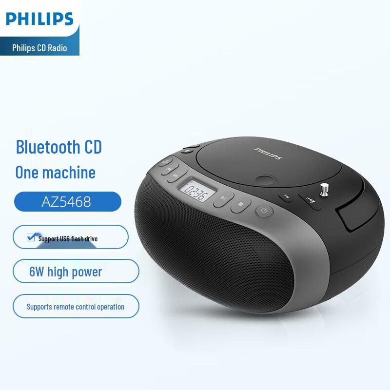 This Philips AZ5468 portable CD player combines classic CD playback with modern connectivity. Enjoy your favorite audio CDs, stream music wirelessly via Bluetooth, or play tracks from a USB drive. Its compact design and mains power make it ideal for any room in your home or office.