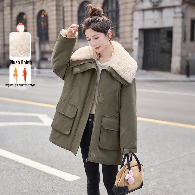 Women's Loose-Fit Lapel Collar Fleece Jacket with Pockets
