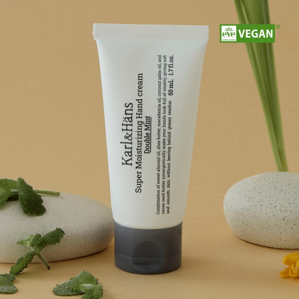 KARLNHANS Super Moisturizing Hand Cream Double Mint 50ml is formulated with healthy moisturizing ingredients derived from coconut, helping to maintain soft and hydrated hands. With a lightweight, non-sticky formulation that absorbs quickly, this hand cream features a refreshing double mint scent. Designed for easy application every morning and night.