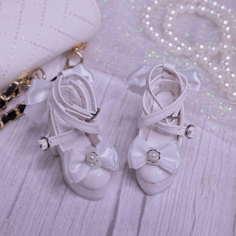 1 Pair Pearl Doll's Shoes PU Dress Up Doll Shoes Bowknot High Heels Doll Accessories