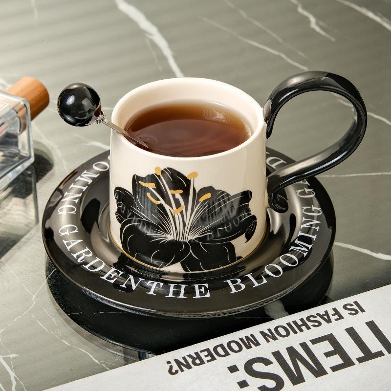 Französischer Retro-Stil Kaffeetasse und Untertasse Set Hohes Erscheinungsbild Nachmittagstee Tassen Restaurant und Café Designgefühl Keramiktassen