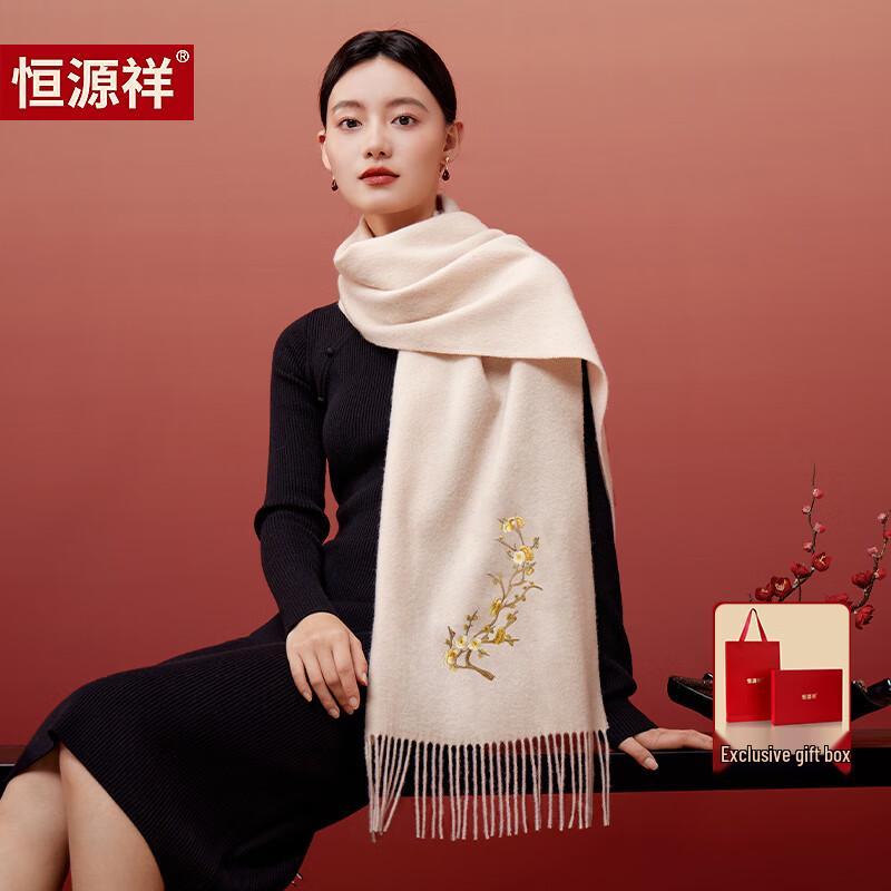 Hengyuanxiang Damen 100% Wolle Bestickter Schal Stola