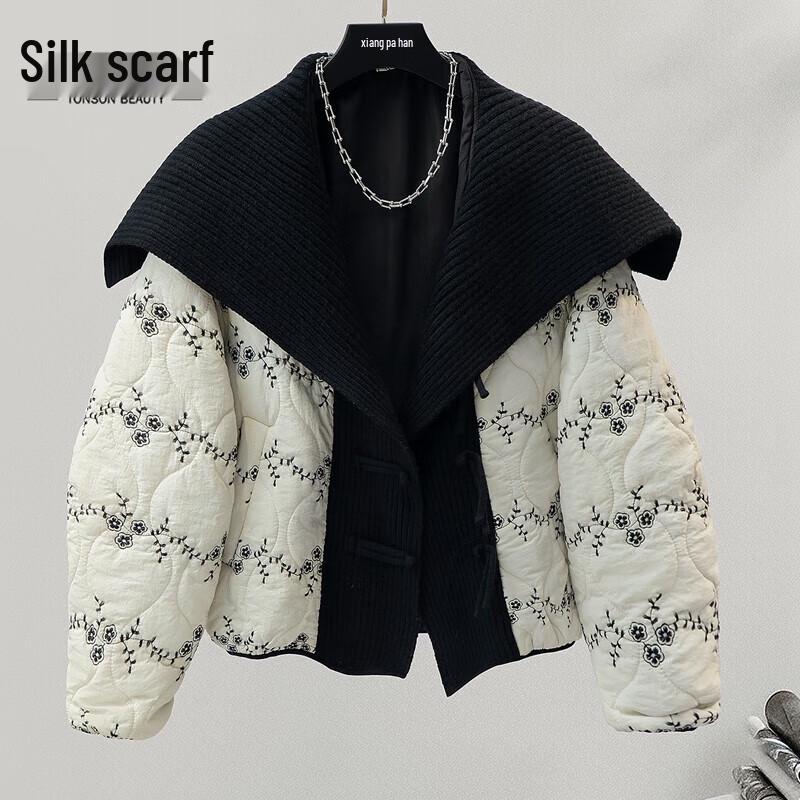 Sibaisha Women's Embroidered Loose Fit Winter Jacket