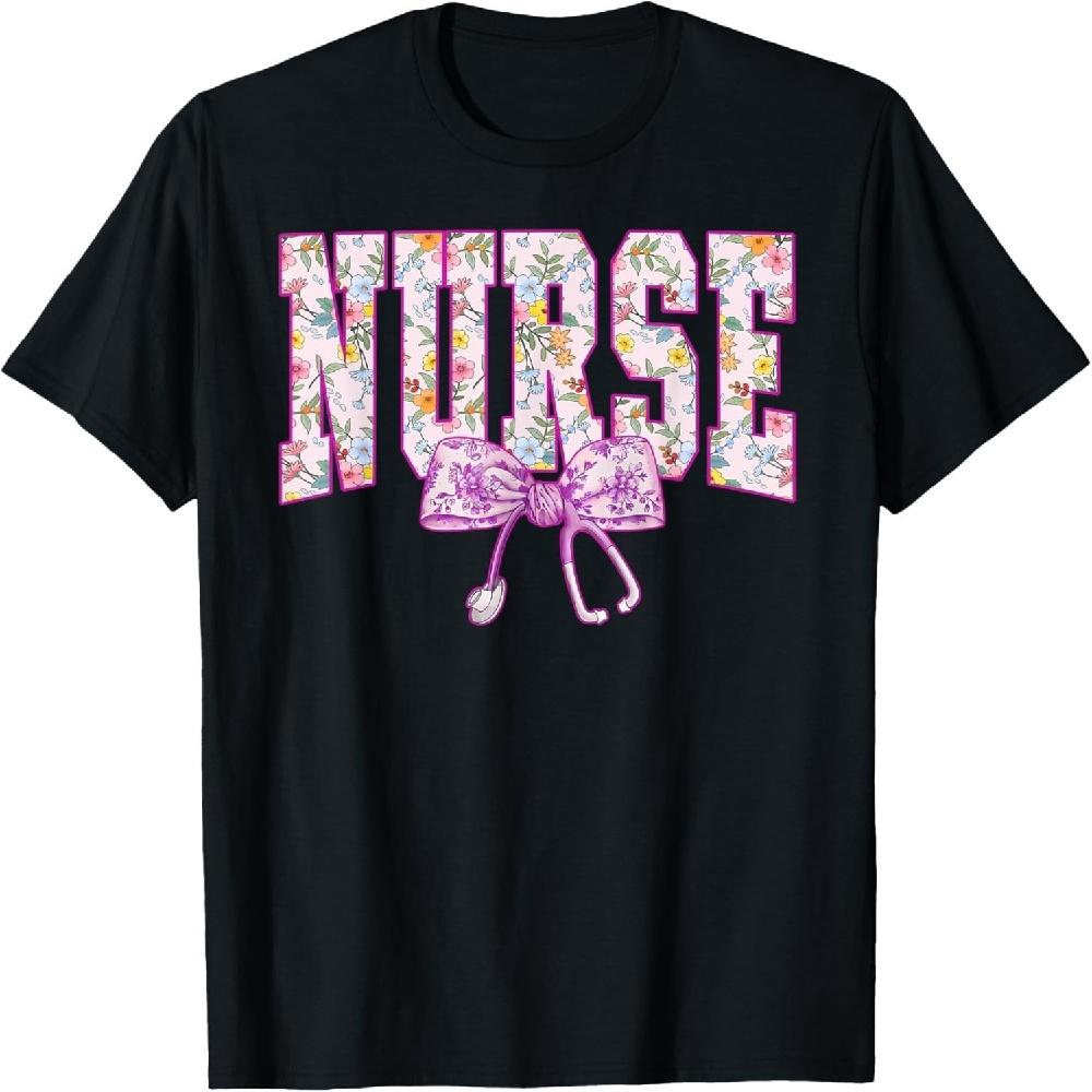 Cute Floral Pink Nurse Coquette Bow Stethoscope Nursing T-Shirt
