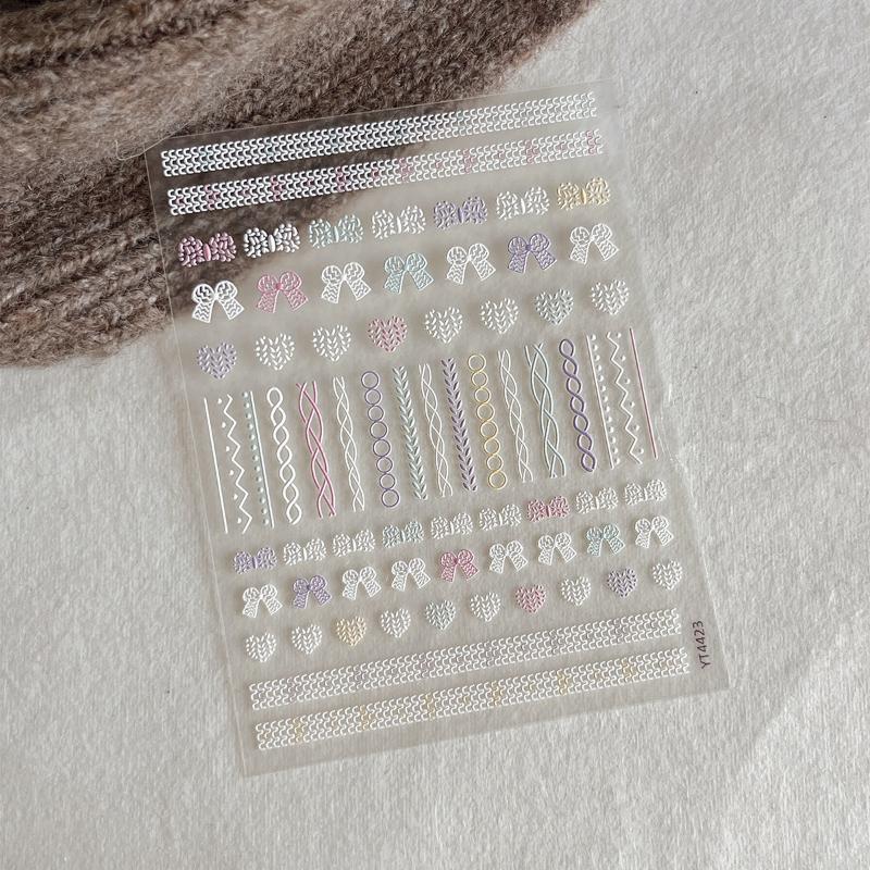 Geprägte Strickschleifen Nagelsticker Liebesherz Schleife Selbstklebende Nagelkunst Dekorationen Abziehbilder Zubehör