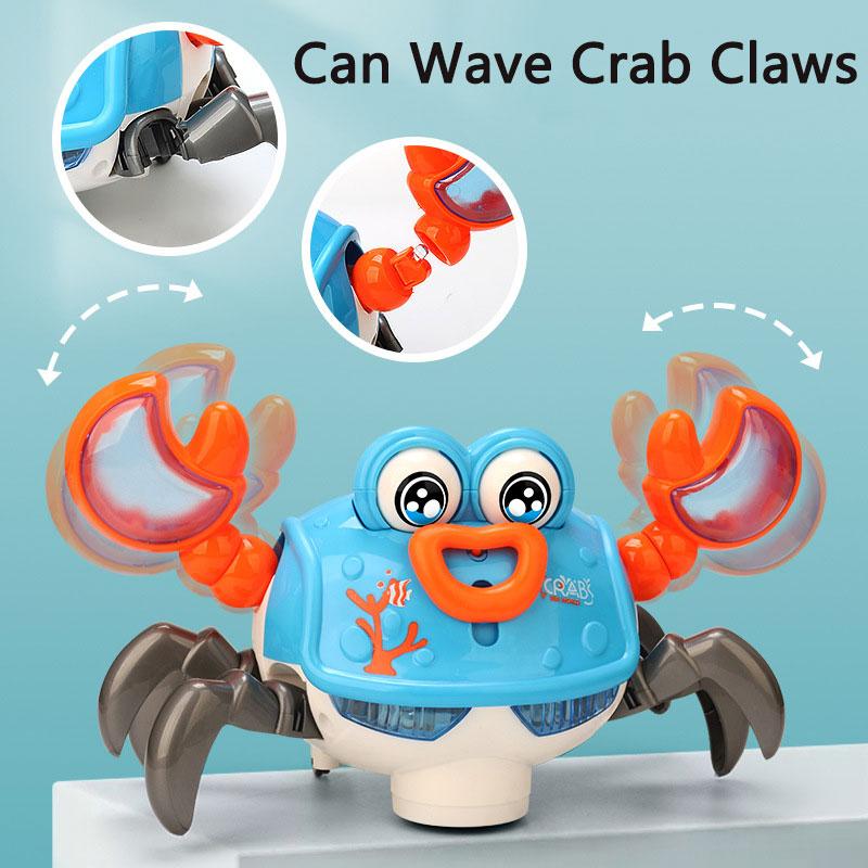 Elektrisches Omnidirektionales Cartoon Krabbenspielzeug für Babys mit LED-Lichtern Musik Bionische Bewegungen Pädagogisches Spaßgeschenk