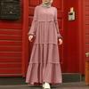 ZANZEA Muslimisches Tägliches Lässiges Rundhals Langarm Lockeres Damenkleid