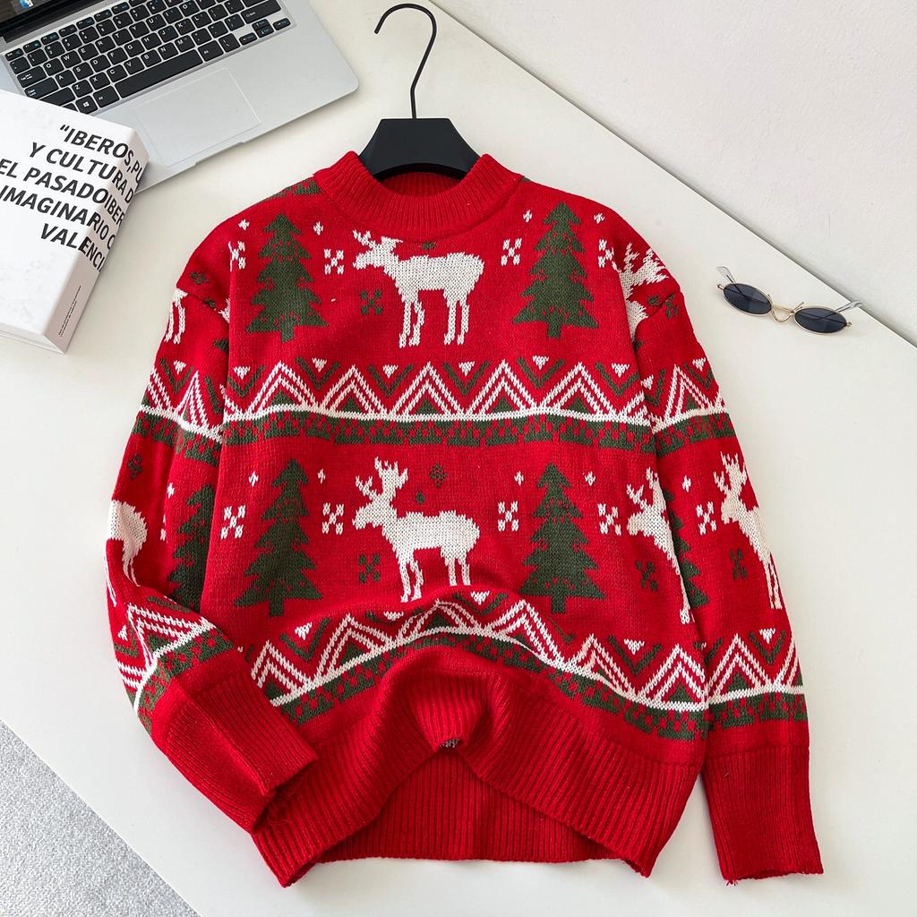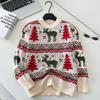 Herbst Winter Damen College Stil Gestrickter Weihnachts Rentier Pullover Oberteile für Mädchen