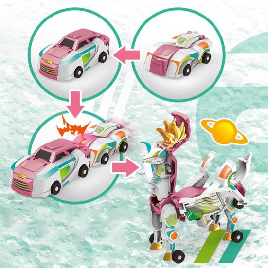 Auto und Fliegender Drache Design: Dieses verwandelbare Spielzeug vereint die Spannung eines schnittigen Autos mit der Mystik eines fliegenden Drachen.. Bei der Kollision offenbart sich eine atemberaubende Verwandlungsszene, die beide Formen zeigt und ein fesselndes visuelles und taktiles Erlebnis bietet.