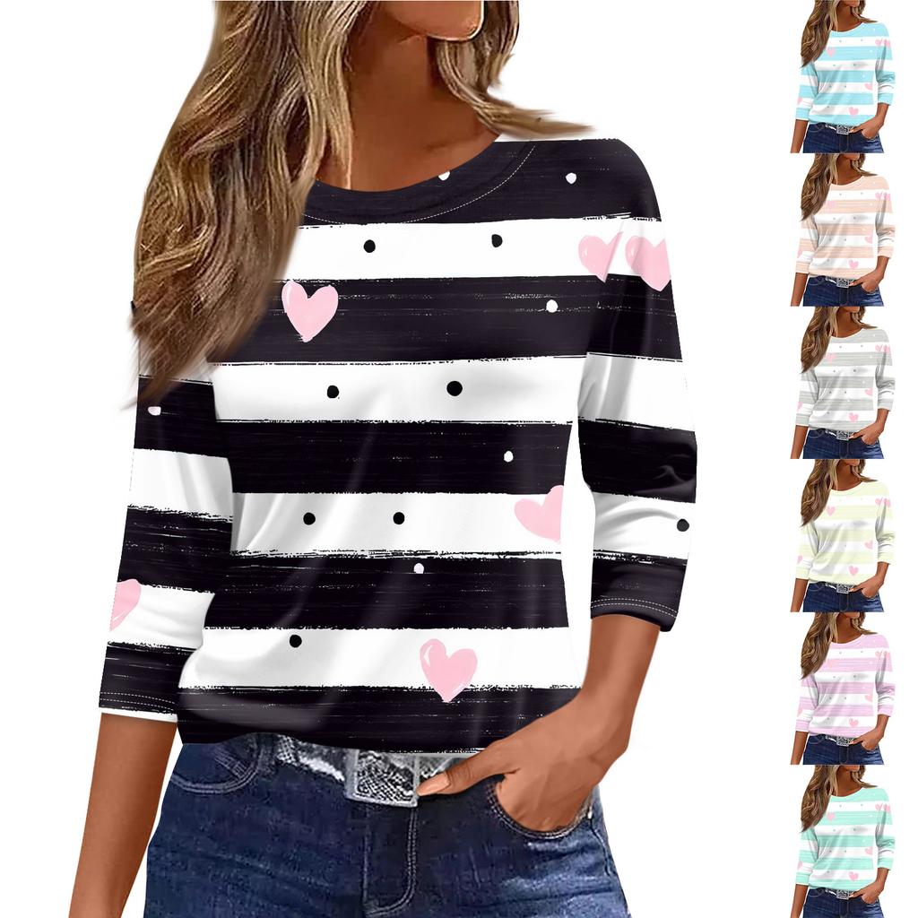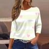 Damen Modisches Lässiges Dreiviertelarm Bedrucktes Rundhals-Top