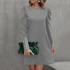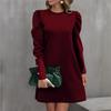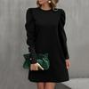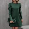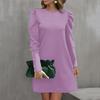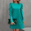 Damenmode Lässig Einfarbig Rundhals Puffärmel Knopf Langarmkleid