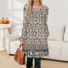 Damen Langarmkleid Herbst Freizeit T-Shirt Lockere Passform Plissiertes Vorderteil Kleider mit Taschen
