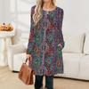 Damen Lässige Mode Langarm Grafikdruck Vintage Kleider mit Taschen