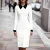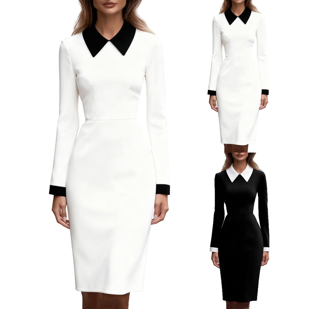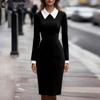 Damen Klassisches Farbblockendes Langarm Schlankmachendes Midikleid