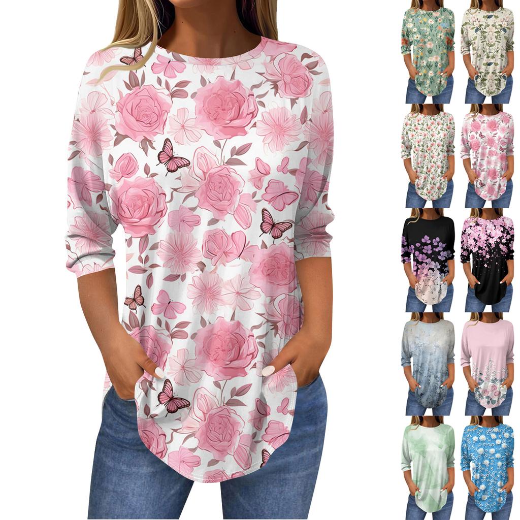 Damen-T-Shirts, 3/4-Ärmel, einfarbig, Pullover, Sommer, Frühling, Tops, Blusen