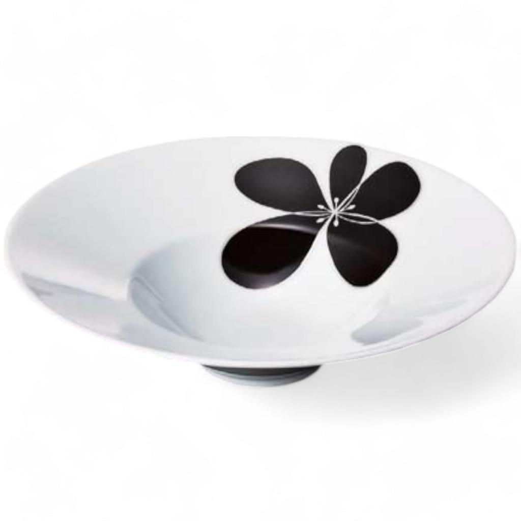 Takumifu Arita Ware Pasta Plate, Thick White and Black Flower Circle, 7-inch Deep Plate, Made in Japan