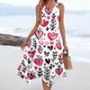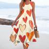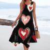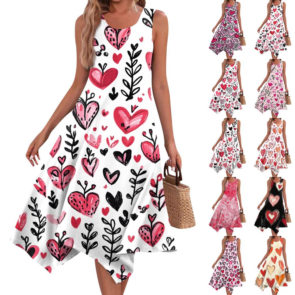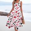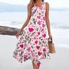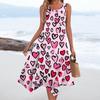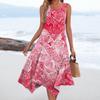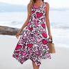 Lässiges, modisches Damen-Midikleid mit Rundhalsausschnitt, ärmellosem Aufdruck und unregelmäßigem Saum