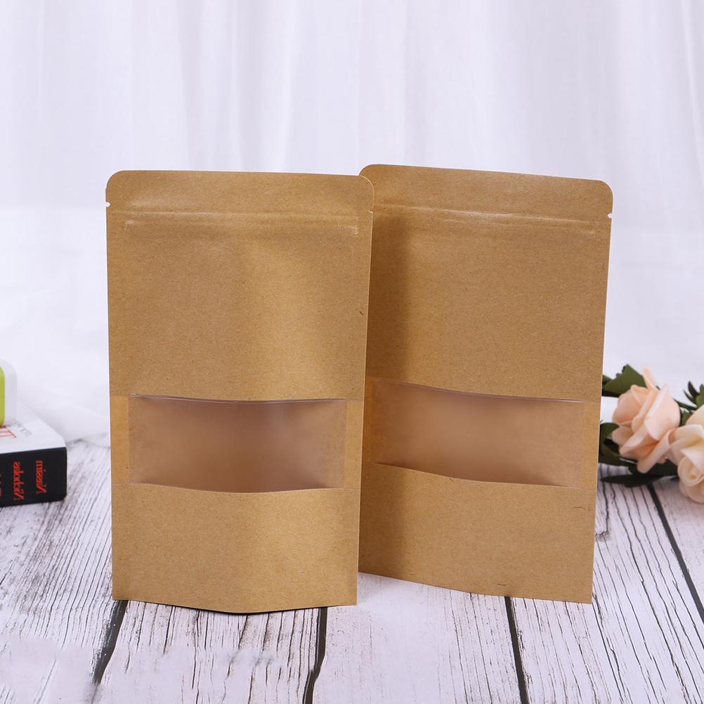 50 Stück Standbeutel Kraftbeutel mit Einreißkerbe und mattem Fenster wiederverschließbarer Zippverschluss Lebensmittelaufbewahrungsbeutel