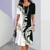 Kleider mit Farbverlauf Sommer Elegant Damenbekleidung Mode Blumenmuster Kurze Ärmel A-Linien-Rock 2023 Neu Übergröße Abendkleid