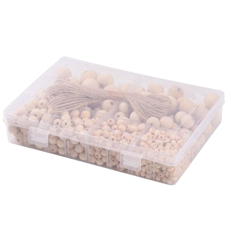 Set of 485 Bulk Natural Wooden Beads Set Assorted Sizes Round Bead with Storage Box DIY Crafts Jewelry Making Supplies