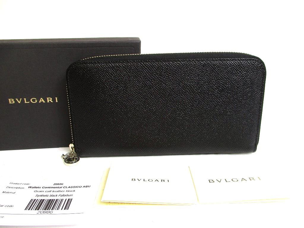 Product : BVLGARI BVLGARIBVLGARI Black Leather Round Zip Long Wallet #a970