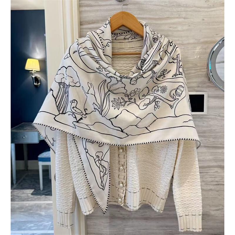 NINA SOLOR Rabbit Print Silk Wool Scarf Shawl