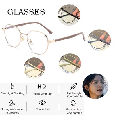 Fashion Octagon Metal Eyeglasses Vision Care Myopia Optical Mirror Anti-blue Light Glasses