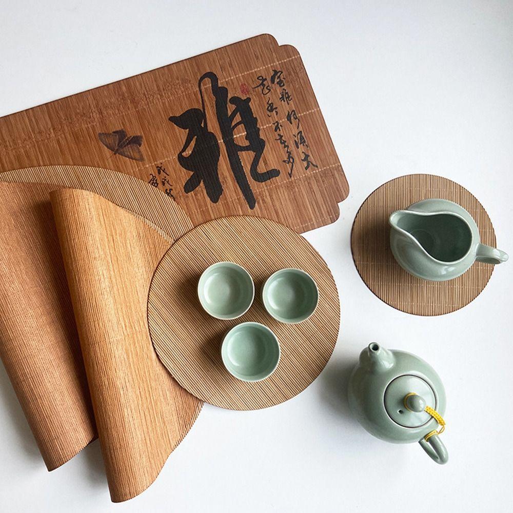 Ovalförmige Teematte im chinesischen Stil Wärmeisolierung Teezeremonie Bambusmatte Chinesische Teekultur