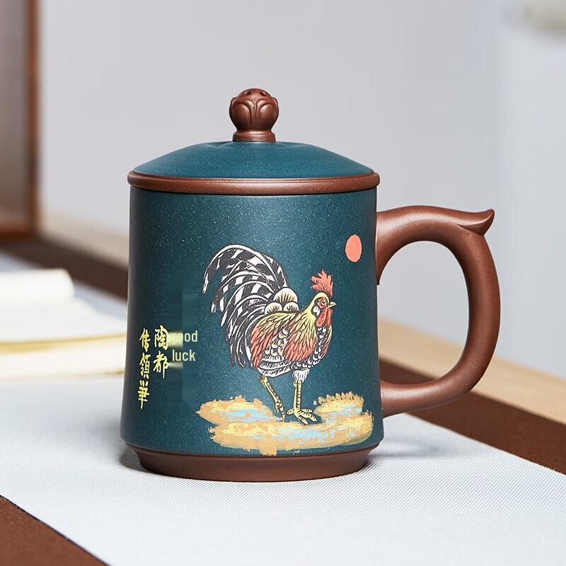 Experience the rich tradition of Chinese tea with this exquisite handmade Yixing Zisha Lidded Tea Cup. Crafted from authentic Yixing purple clay, known for its unique properties that enhance the tea's flavor. Each cup is purely handmade, featuring intricate hand-painted and frosted details with delicate decal work. Designed with a convenient lid to keep your tea warm and a comfortable handle for easy sipping. This 'Great Luck and Prosperity' themed cup is perfect for daily tea brewing at home or in the office, and comes in elegant gift box packaging, making it an ideal present for tea lovers.