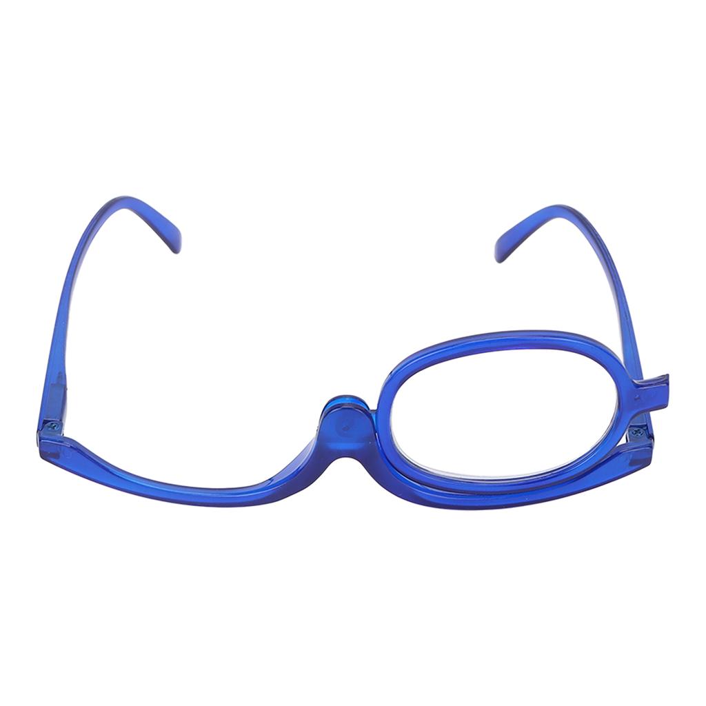 Vergrößerungs-Make-up-Brille, professionell, tragbar, für Damen, modisch, herunterklappbar, Kosmetikbrille, Blau(+3,50 )