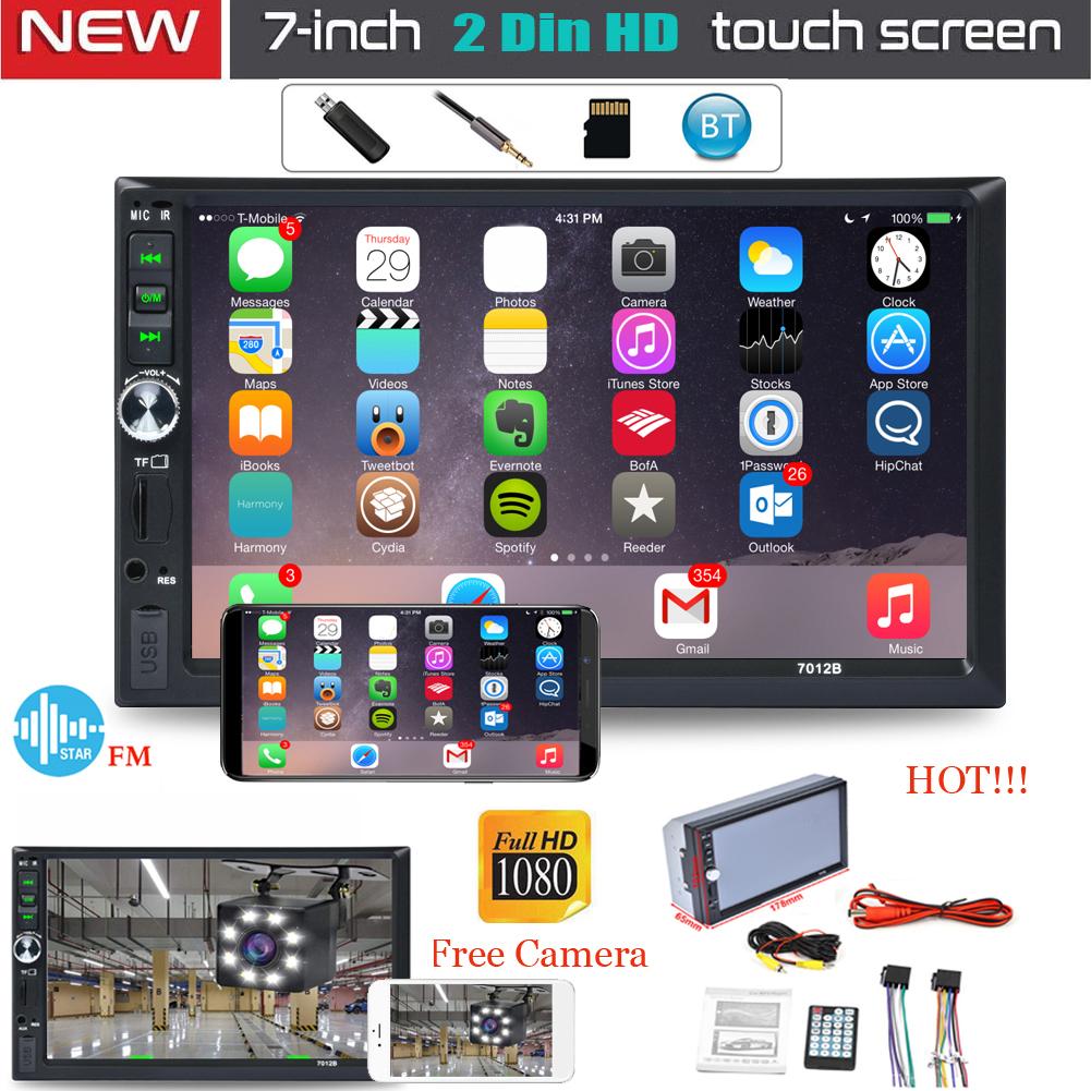 7 Zoll 2 Din HD Autoradio Stereo Touchscreen mit kostenloser Rückfahrkamera Dual Mirror Link Unterstützung Android und IOS Telefon