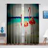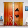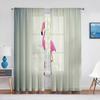 Rote Flamingos Kirschblüten Mond Tüll Vorhänge für Wohnzimmer Schlafzimmer Dekor Chiffon Transparent Voile Vorhang Küchenfenster Vorhänge