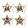 Die sternförmigen Anhänger zeigen vier einzigartige weihnachtliche Muster, darunter Rentier, Weihnachtsmann, Schneemann und Elch in Kombination mit Weihnachtsbäumen, und fangen vielfältige Weihnachtsbilder ein..