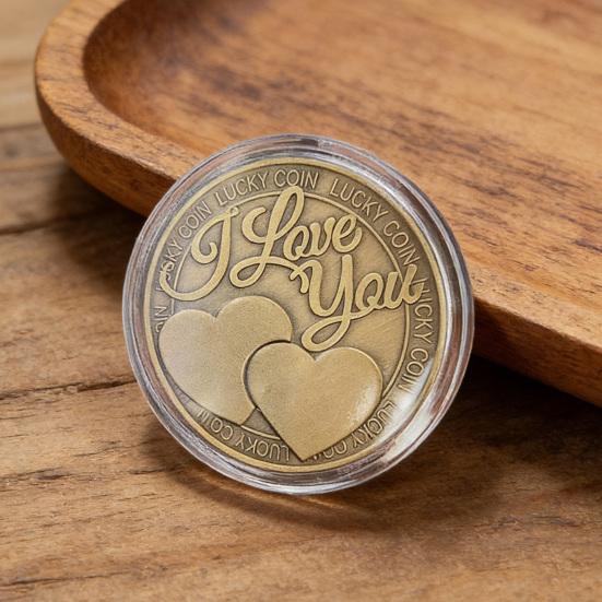 Diese Glücksmünze hat eine Retro-Metalltextur aus Imitationsbronze mit einem subtilen gealterten Finish, die einen klassischen und nostalgischen Charme hervorruft.. Die Vorderseite zeigt "Ich liebe dich" in eleganter Schreibschrift zusammen mit zwei überlappenden Herzen, die tiefe Zuneigung symbolisieren, ideal für den Valentinstag oder romantische Anlässe..