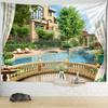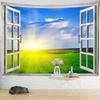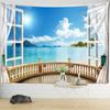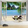 Sonnenuntergang am Meer Fenster Landschaft Malerei Wandteppich Hängen Boho Hippie Kunst Tapiz Ästhetik Room Decor