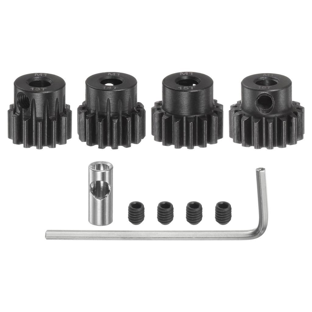 uxcell M1 Mod1 Pinion Gear Set, 5mm Shaft, 13T, 14T, 15T, 16T Motor Gears, Hardened Steel Pinion Gears with 3.17mm Coupler for RC Cars (4 Pieces)