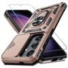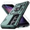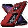 Schutzhülle für Samsung Galaxy S25 S24 Ultra S23 Plus S22 S21 S20 FE 5G mit einem Displayschutz aus gehärtetem Glas, Ring-Kickstand, Schiebekameraabdeckung