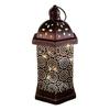 Gefertigt aus hochwertigem Eisen mit filigranen, durchbrochenen Designs und Beschichtung, ist diese Laterne rostbeständig und verfügt über energieeffizientes LED-Licht für lange Nutzung.
