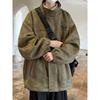 Japanischer Retro Kord Baumwollmantel für Herren im Herbst und Winter Verdickter Stehkragen Baumwollmantel mit Buchstabenetikettierung Baumwolljacke