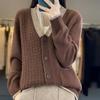 Verdickte V-Ausschnitt Wollstrickjacke für Damen im Herbst und Winter Neue lockere und vielseitige Color-Blocking Kaschmirjacke Lässiges Strickoberteil