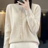 Neuer Rundhals-Hollow-Woll-Cardigan für Herbst und Winter für Damen, lockerer und modischer Kaschmirpullover, weiches und geschmeidiges hautfreundliches Oberteil