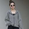 Frühlings- und Herbst-Faul-Cardigan Gestreifte Sweatshirt-Jacke Damen Neu Locker Kapuzenpullover Hong Kong Style Oberteil