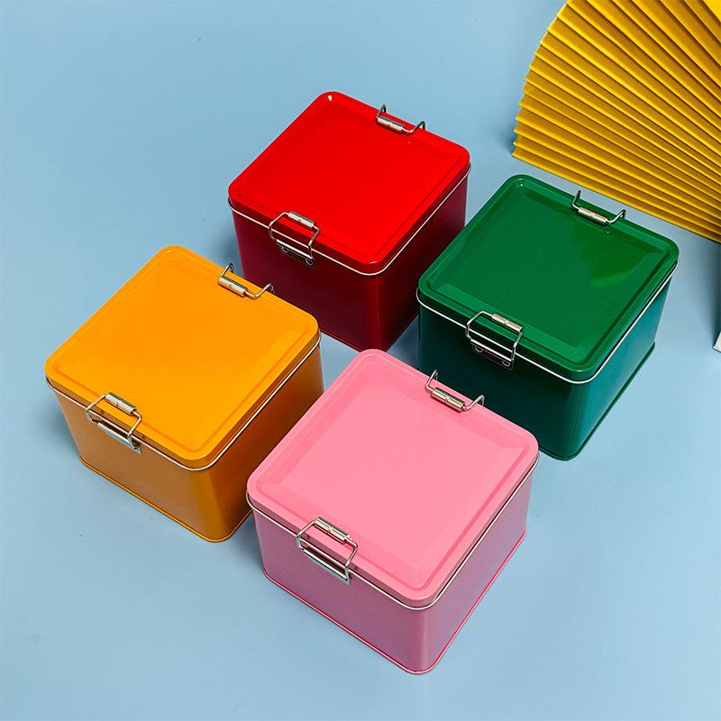 Quadratische Blechdose Keksdose mit Deckel Staubdicht Heimküche Desktop Aufbewahrungsblech Langlebige Schnalle Eisenbox
