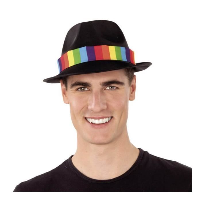Chapeau Gangster Noir avec Bande Arc-en-Ciel - Disfrazzes - Accessoire de déguisement mixte