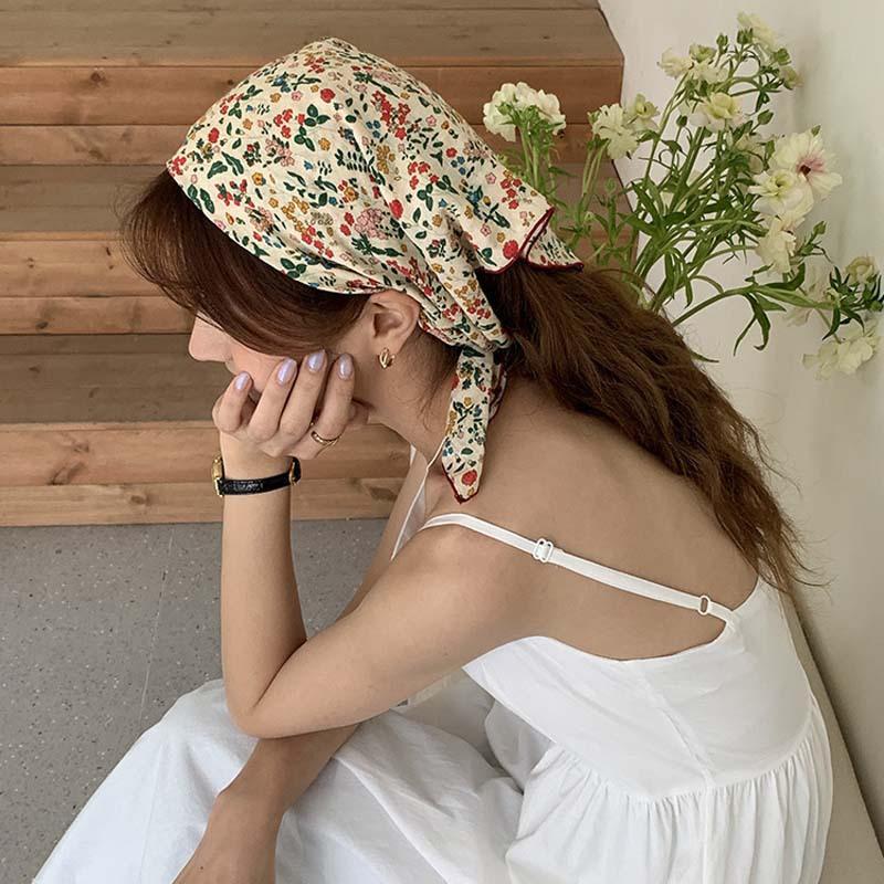 Spring Summer Floral Print Thin Scarf For Women Girls 53*53Cm Beautiful Flower Cotton Polyester Scarf Outdoor Sun Protection