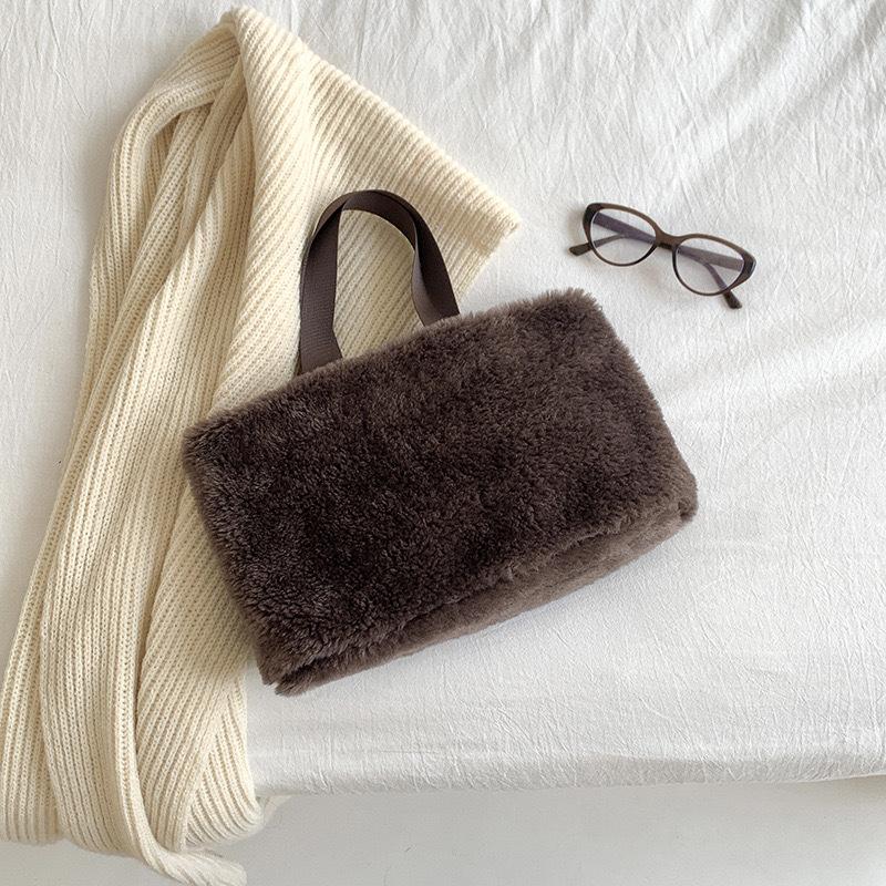 Fluffy Small Bag for Women 2023 New Autumn Fashion Simple Tote Bag Casual Retro Handheld Fluffy Bag for Women