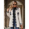 GMXIA Women's Autumn and Winter Single-breasted Lapel Mid-length Checkered Plush Coat Jackets & Coats
