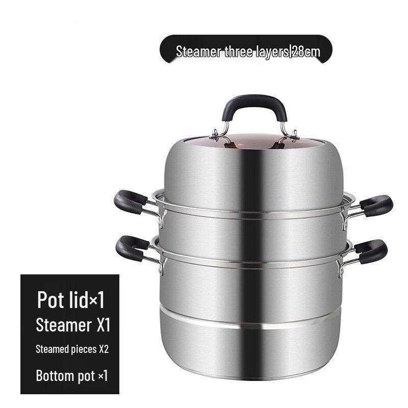 ZISIZ Stainless Steel 3-Layer Steamer Pot